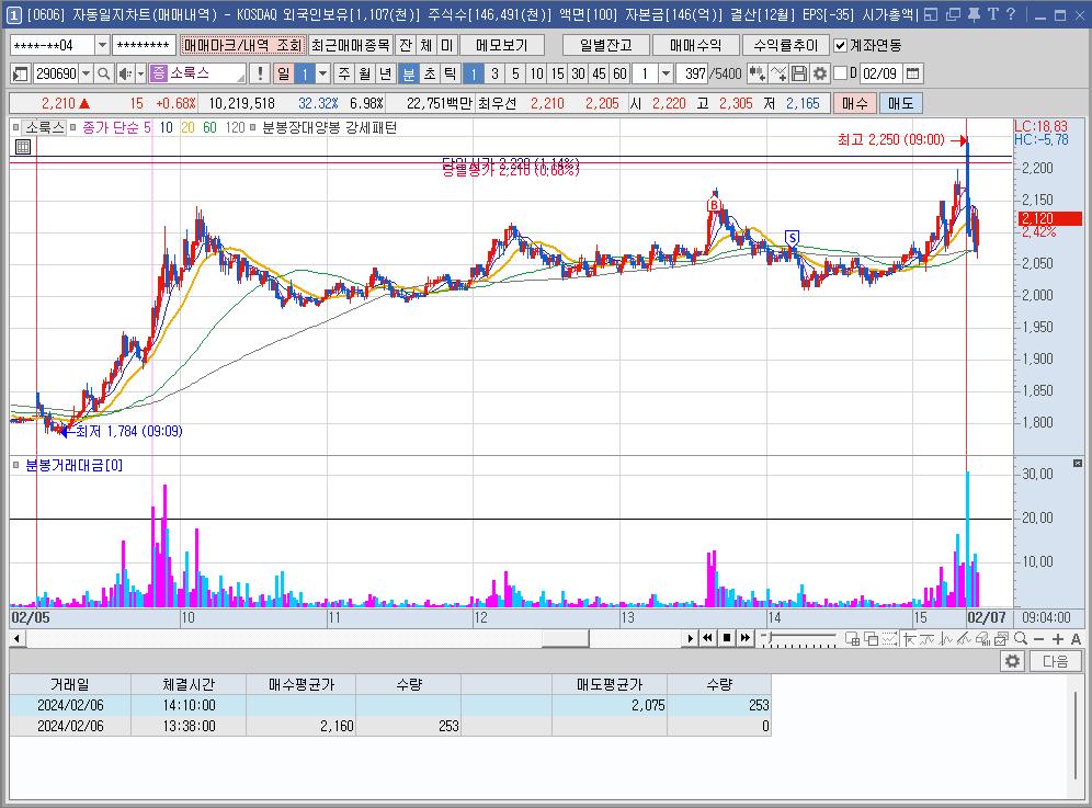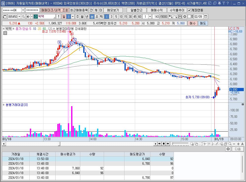 종목선정 실패(뇌동인것 같다). 이해가 안 가는 어설픈 매수타점. 손절 실패.