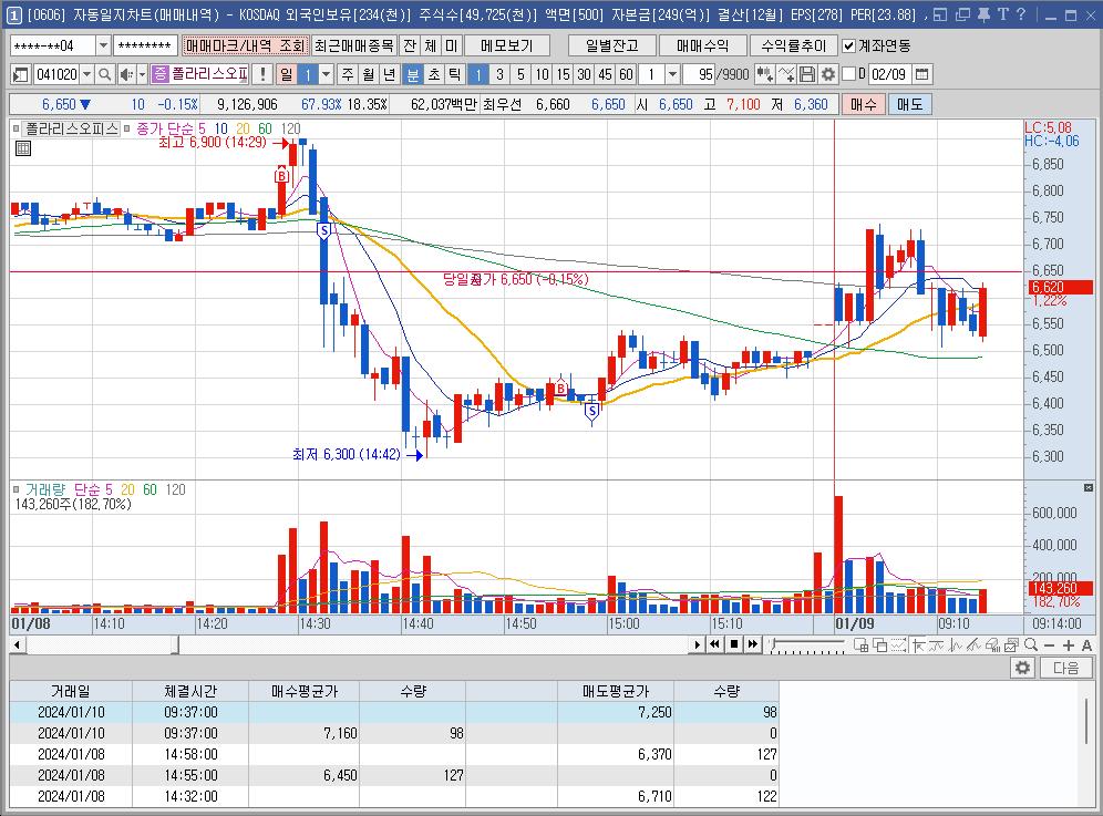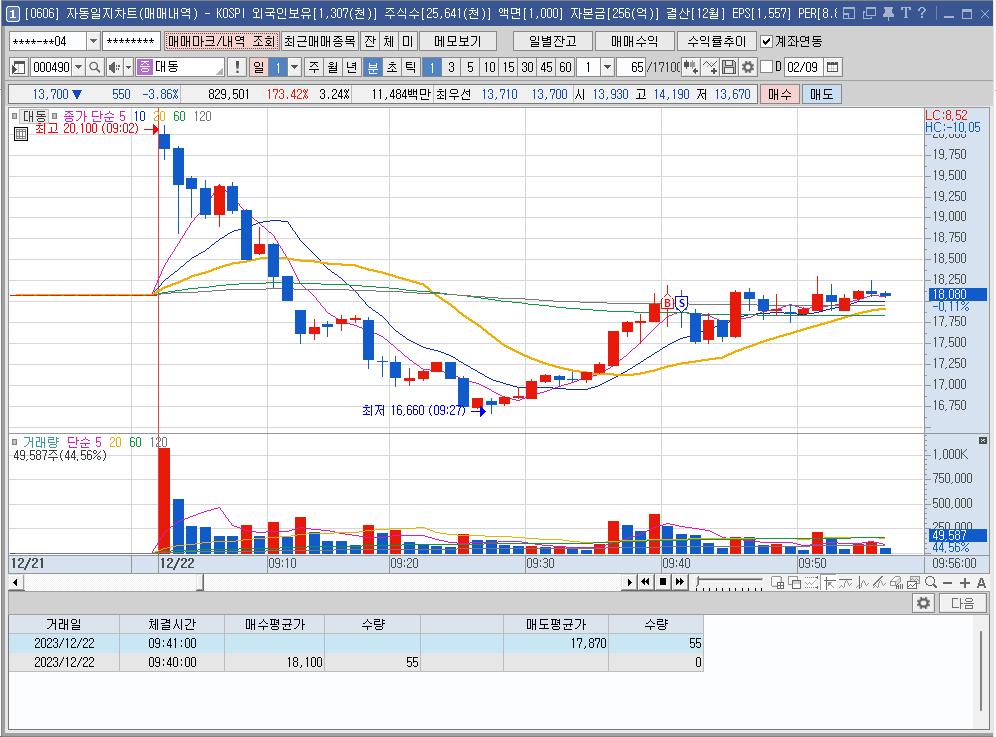 갭상승 큰 종목 매매금지! 욕심에 익절 실패. 손절 실패. -15,224(-2.94%) / -13,569(-2.32%)