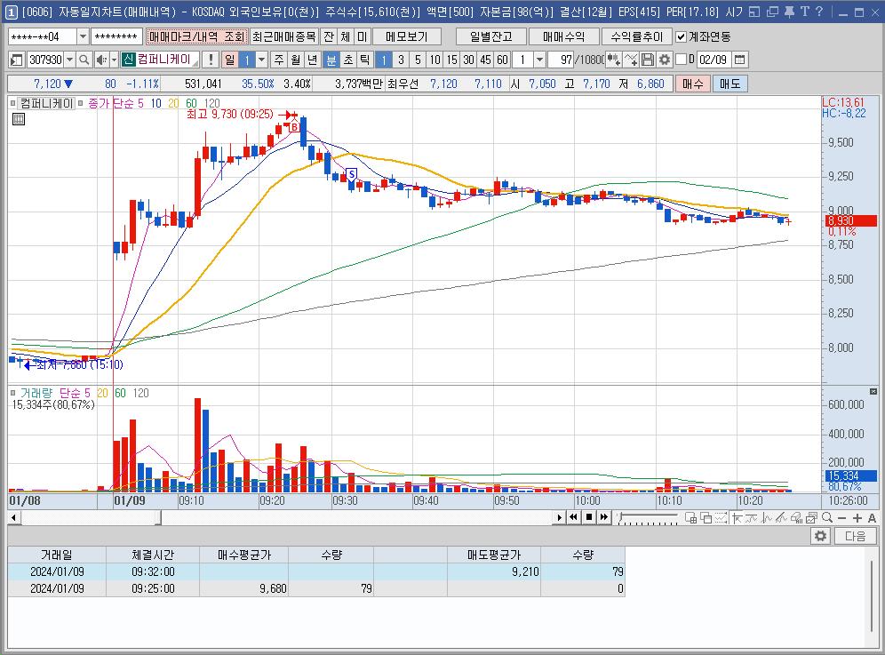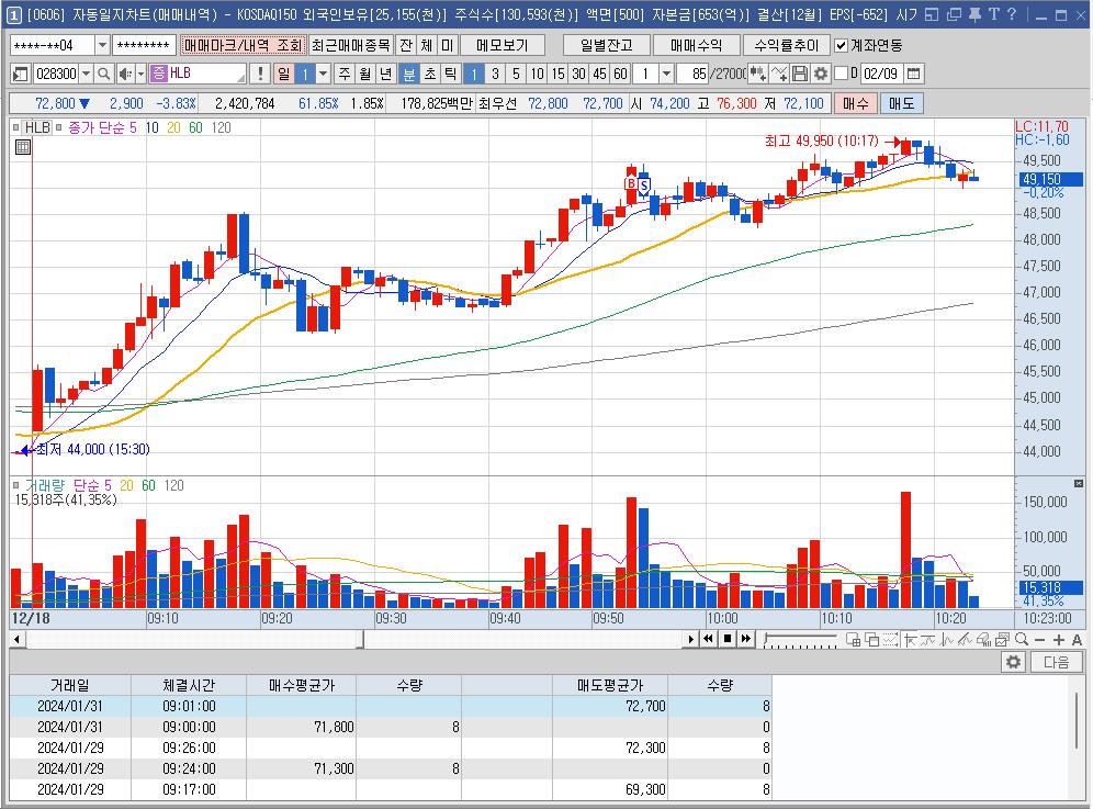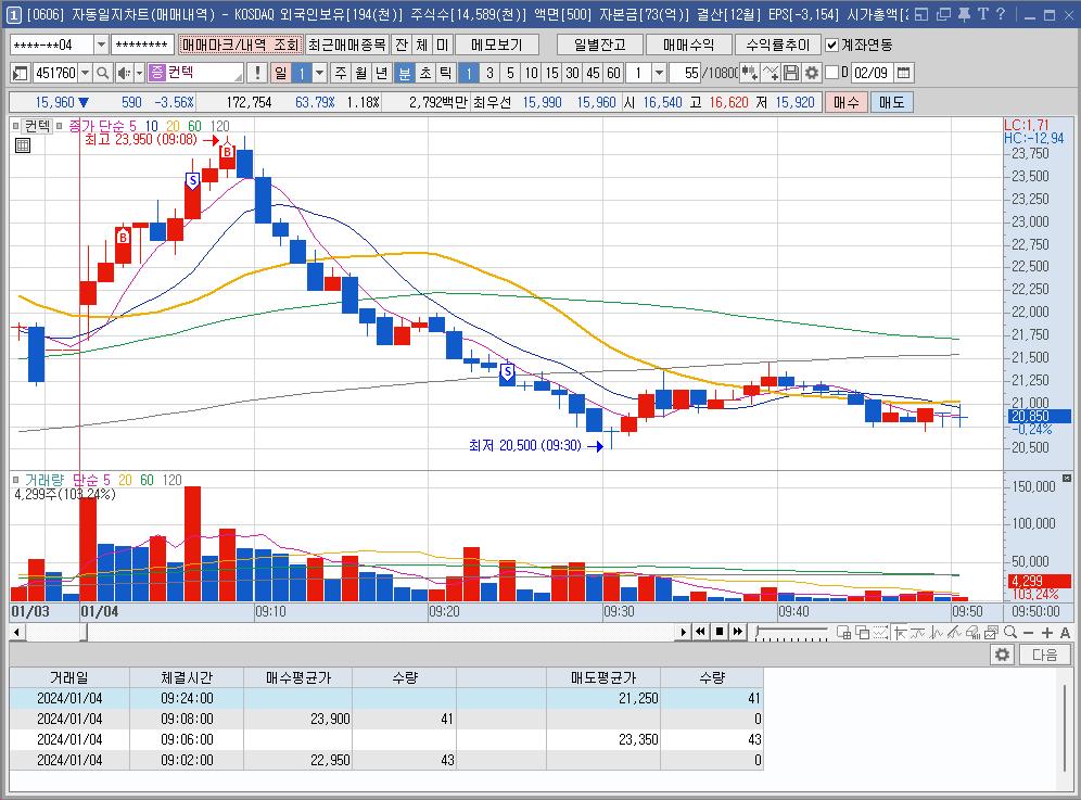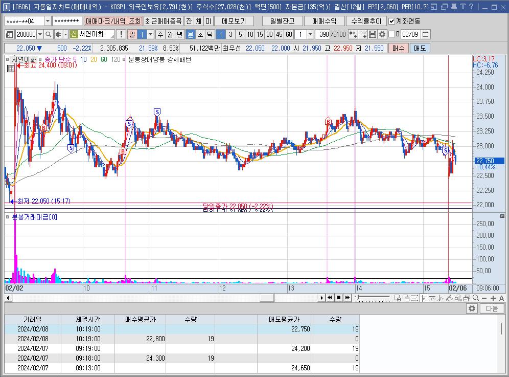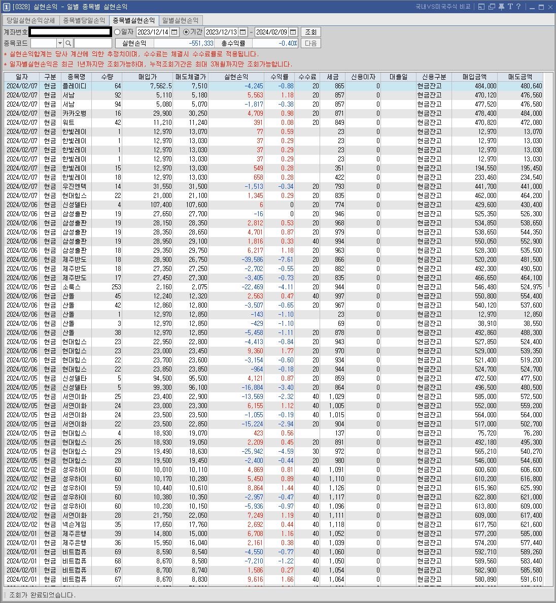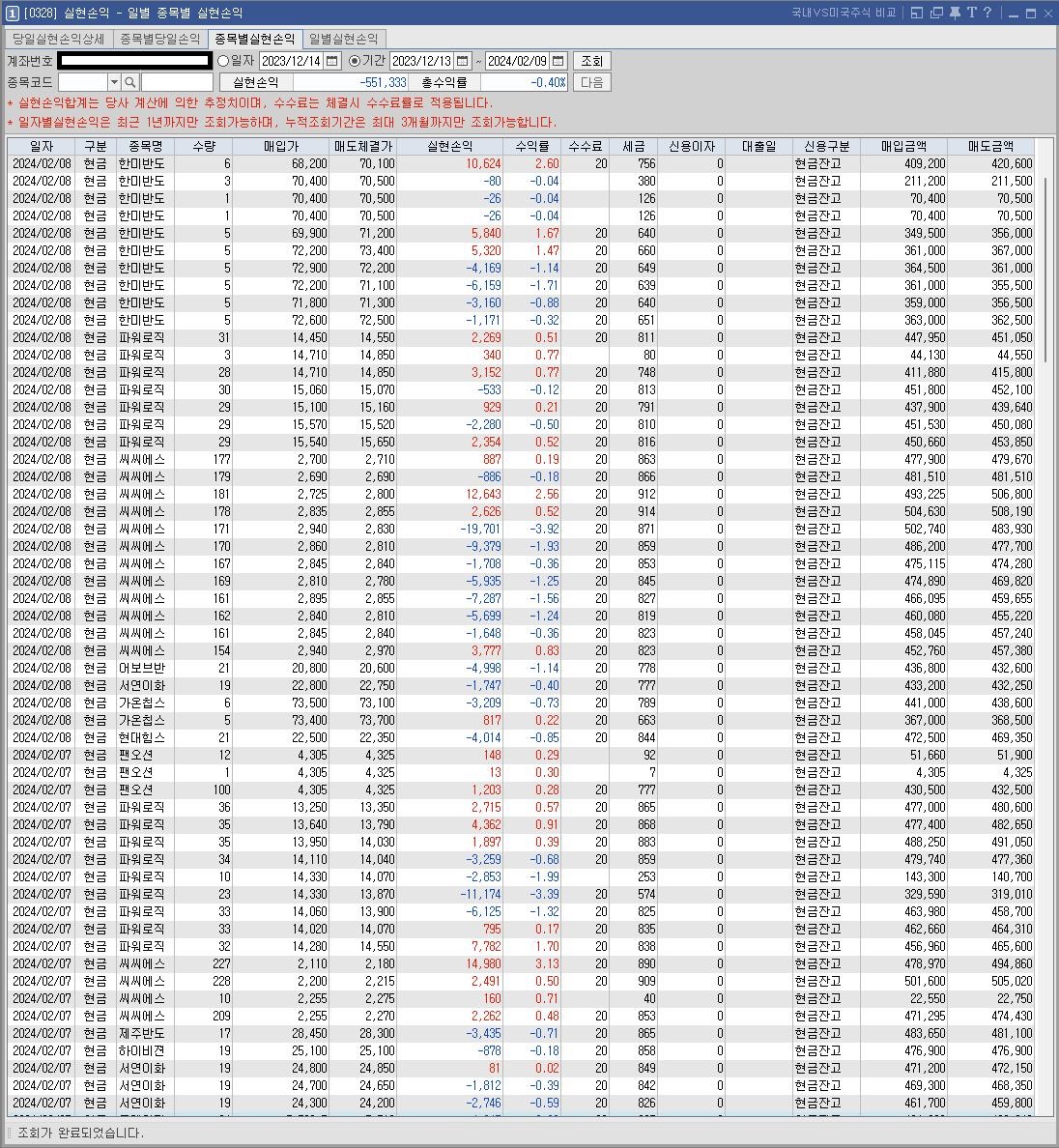 여러 가지 책도 보고 유튜브도 보고 매매를 했지만 2024년 2월 9일 현재 입금액의 51.69% 손실 중