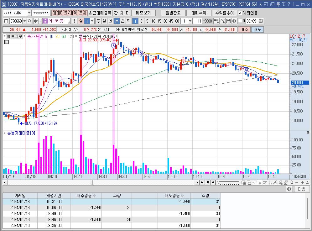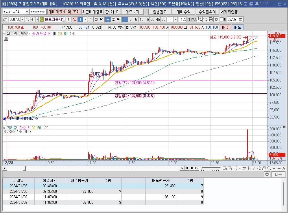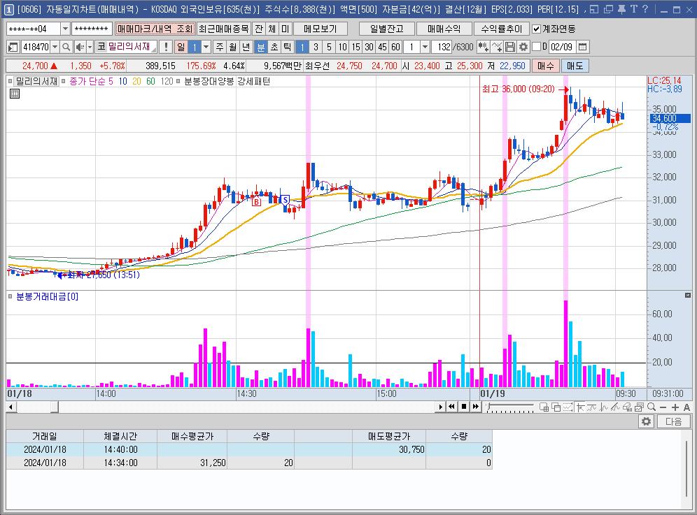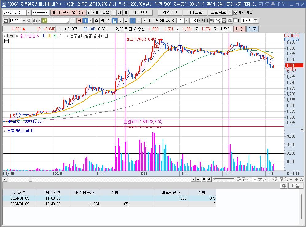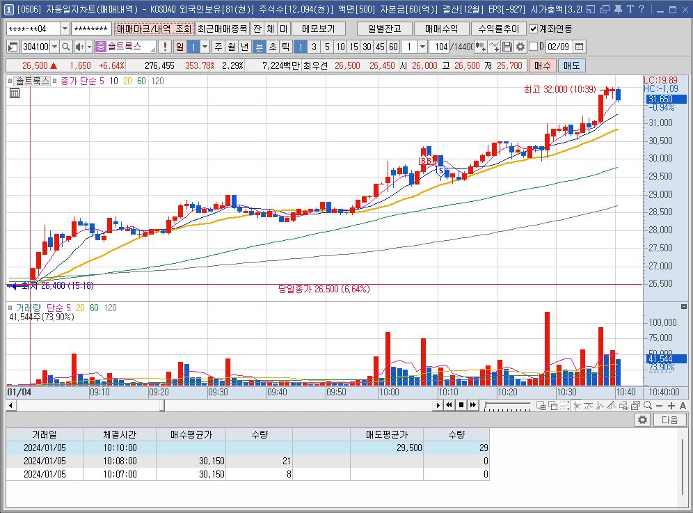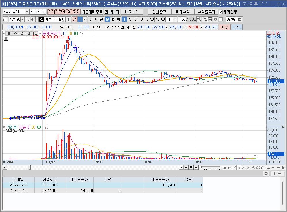 종목선정 실패? 완만하게 오르는 종목은 매수 진입이 어렵다(공부가 더 필요하다). 전체적인 흐름파악 못함.