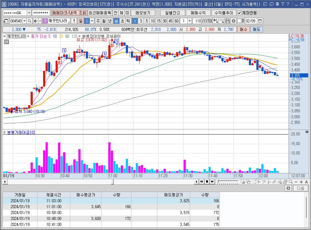 종목선정 실패 = 호재뉴스와 함께 시간 외 상한가 = 갭상승 큰 종목은 매매금지! -38,479(-5.03%)