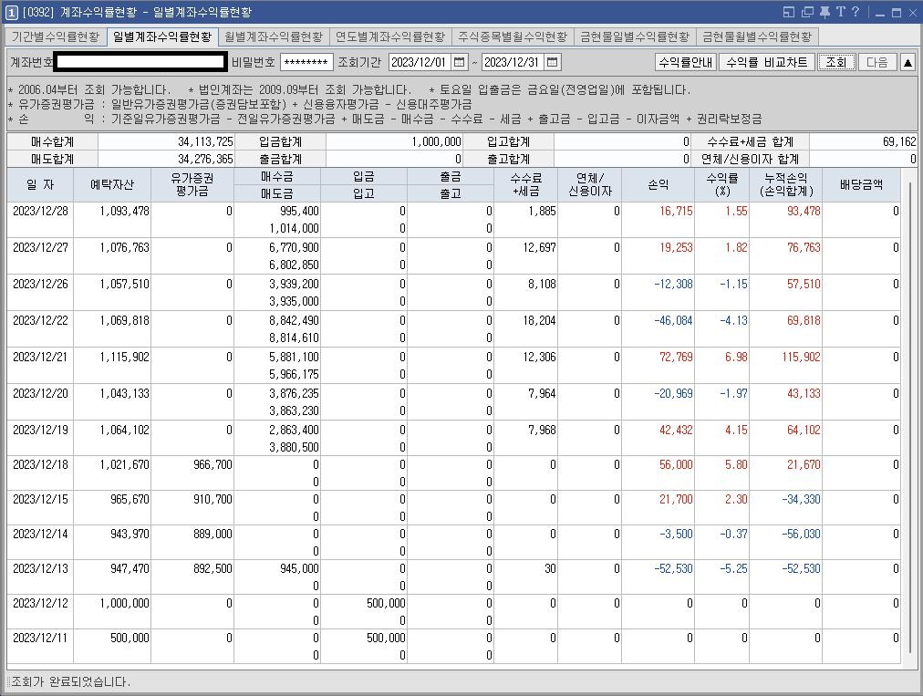2023년 12월 11일 키움증권에 계좌를 만들고 총 100만 원을 입금하고 시작