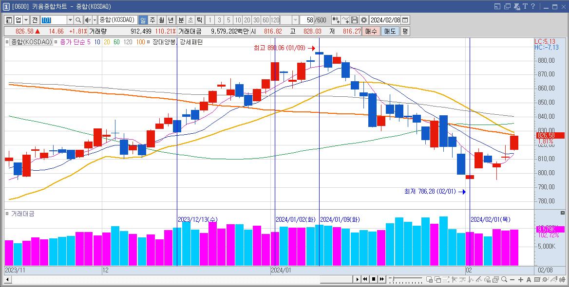 월봉, 주봉, 일봉 등에서 하락 추세의 종목 매매 금지(불리한 게임)