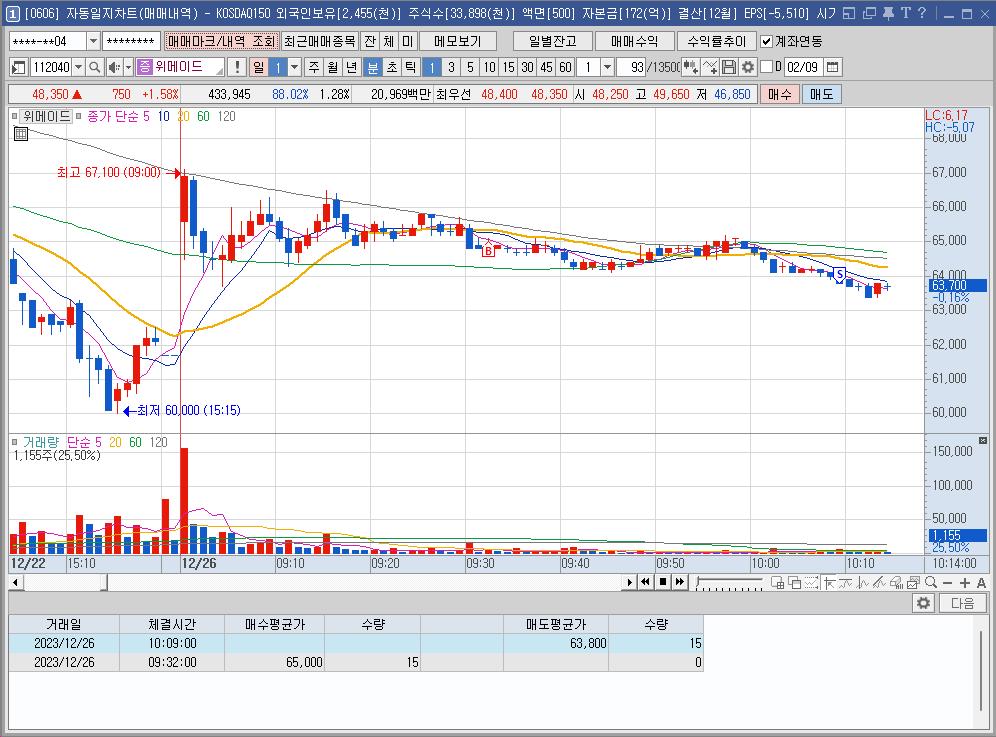 손절 실패. 추격매수 고점부근 매매는 항상 주의.