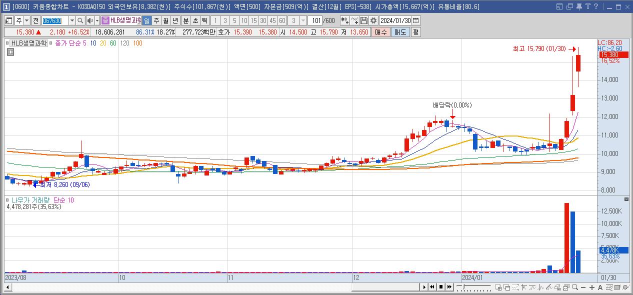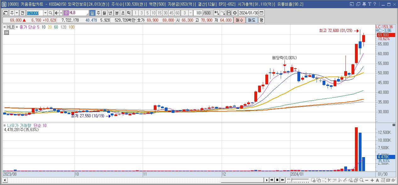 HLB제약 8.03 54,198 HLB, 간암 치료제 FDA 허가 기대감 지속 부각