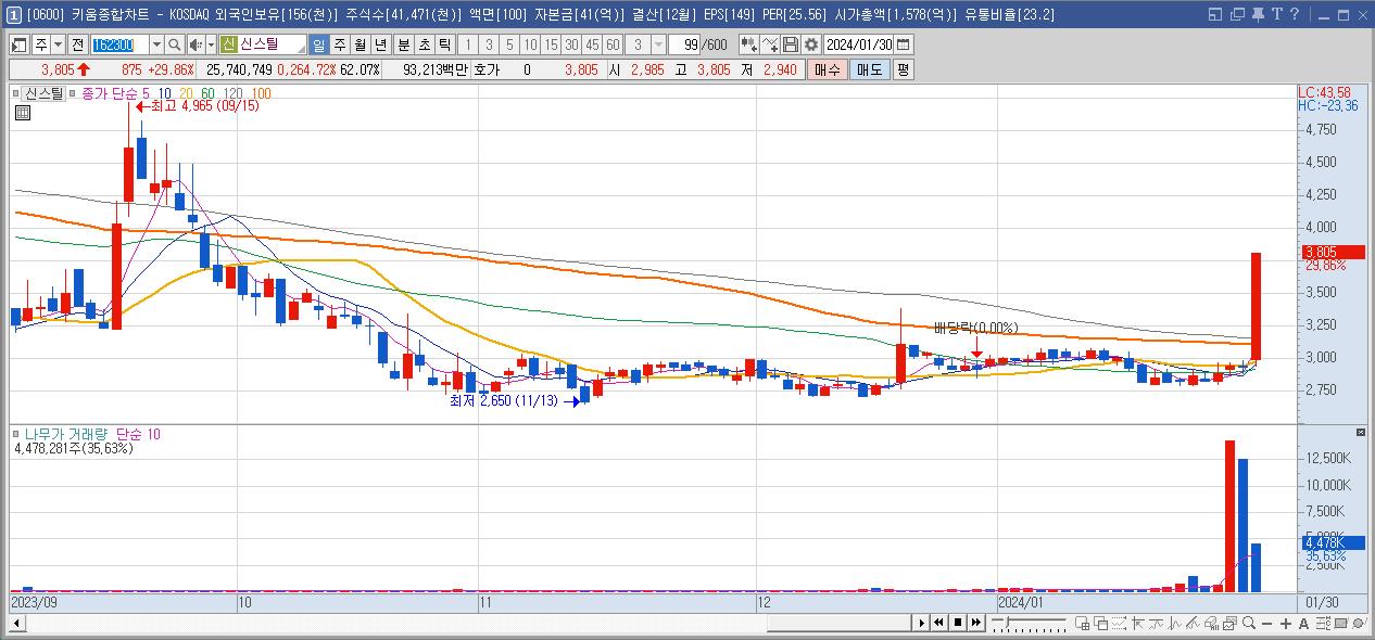 신스틸 29.86 93,188 기업 밸류업 프로그램 기대감