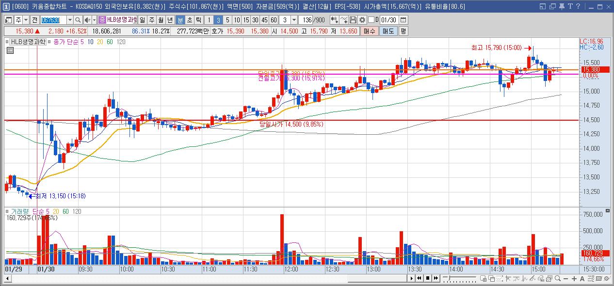 HLB생명과학 16.52 273,675 HLB, 간암 치료제 FDA 허가 기대감 지속 부각
