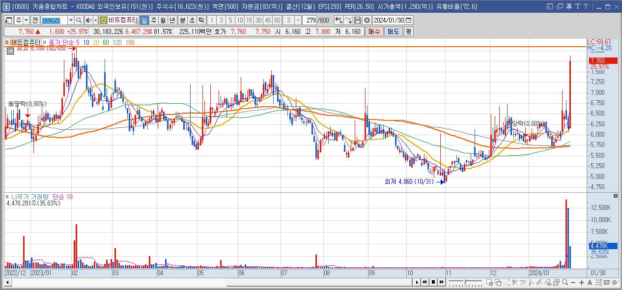 한일진공 8.90 2,647 비트코인, 43000달러 회복 소식 속 가상화폐 테마 상승