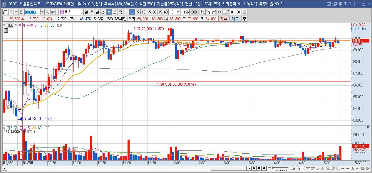 HLB 10.62 523,822 HLB, 간암 치료제 FDA 허가 기대감 지속 부각