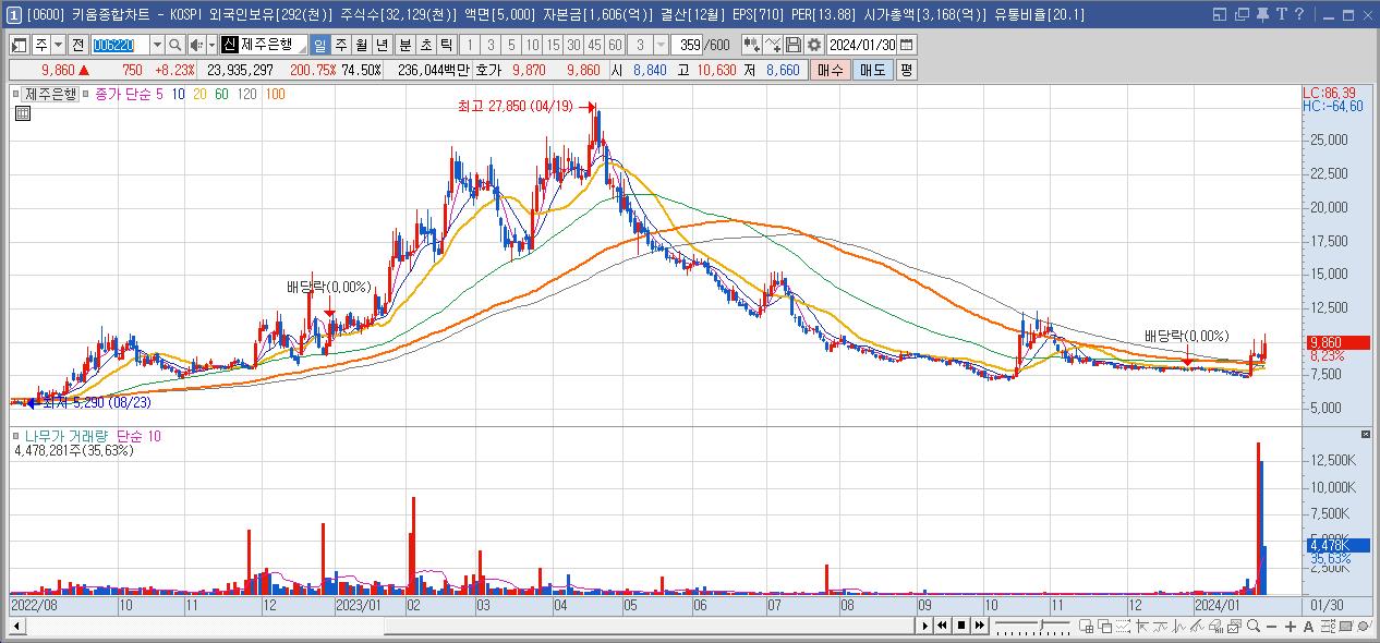 제주은행 8.23 234,725 기업 밸류업 프로그램 기대감 속 저PBR주 강세