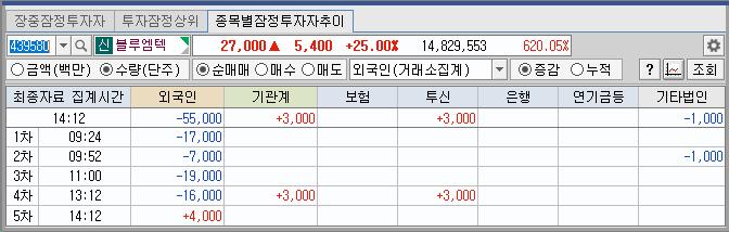 케이씨에스 | 29.88 | 44,282 | SKT 세계 최초 하이브리드형 양자암호 상용화에 협력 부각 강세 |