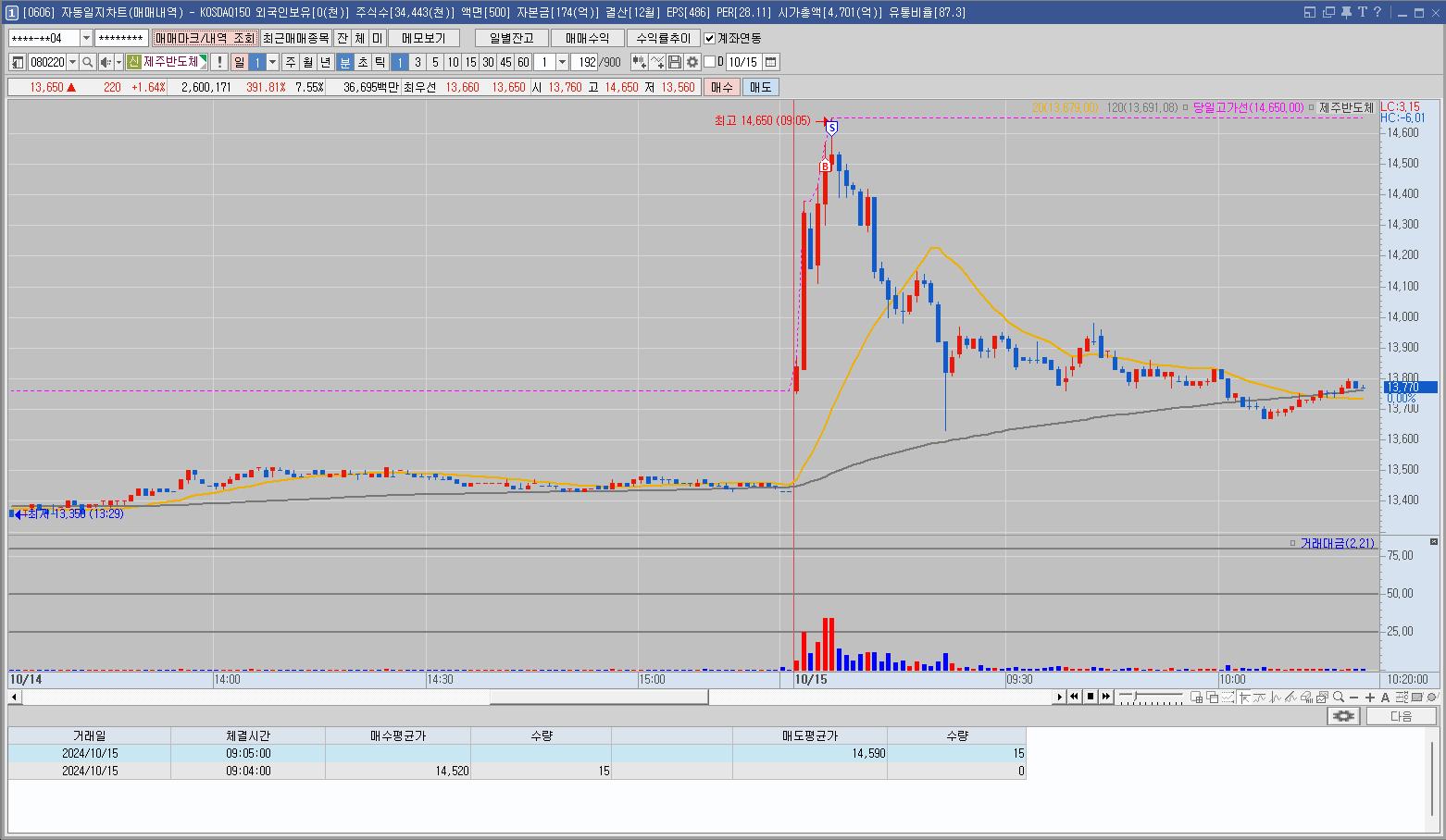 장 초반 반도체주가 강했는데 어디까지 지속될지 몰라서 스캘핑으로 진입 후 하락 분위기에 매도