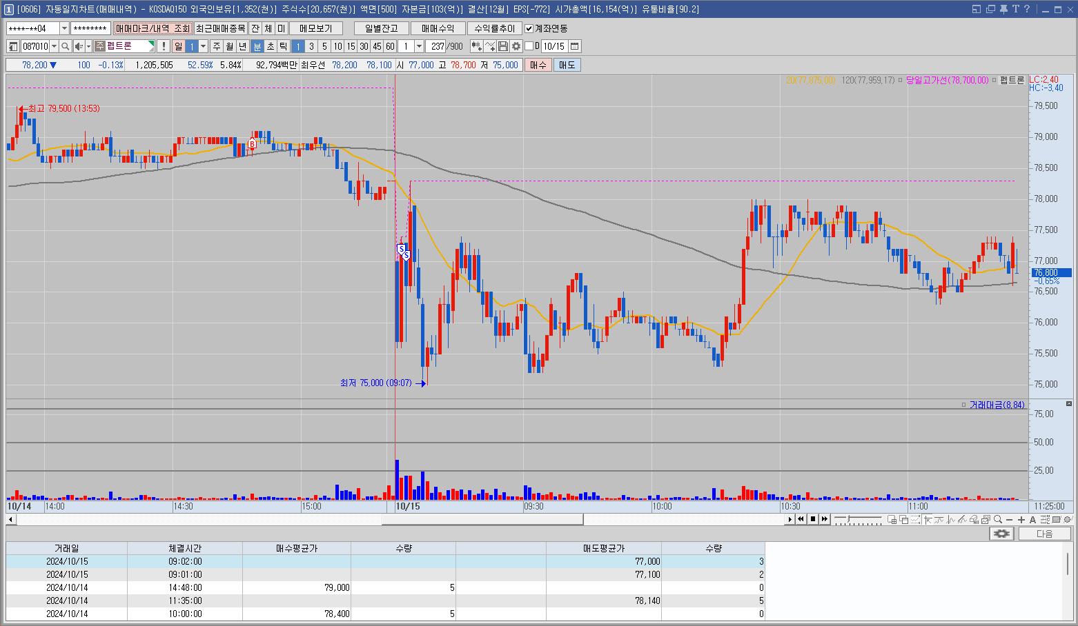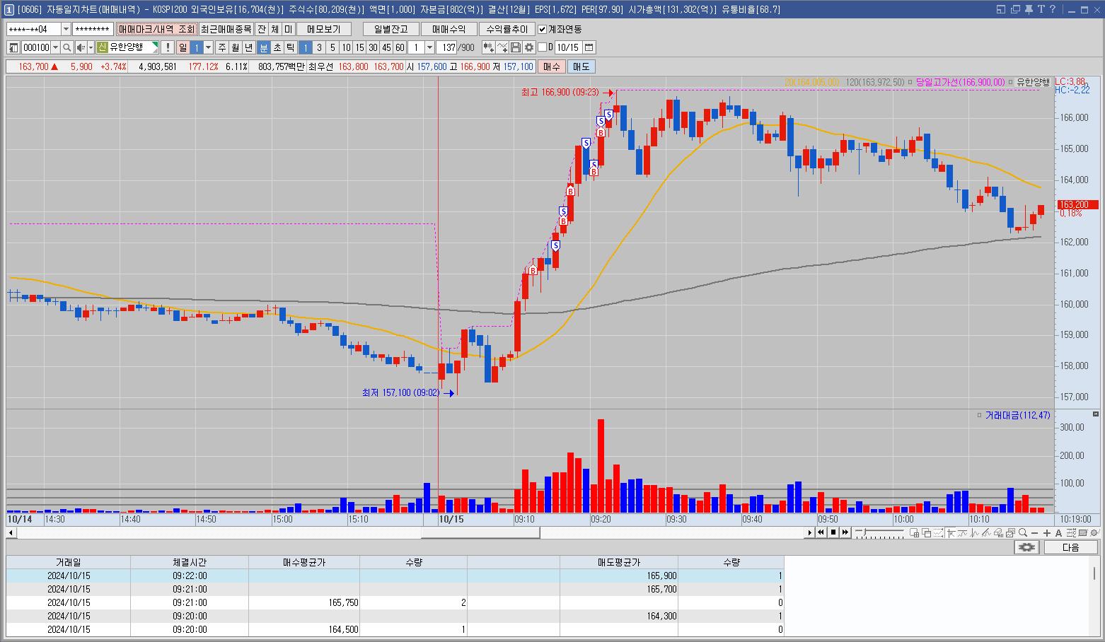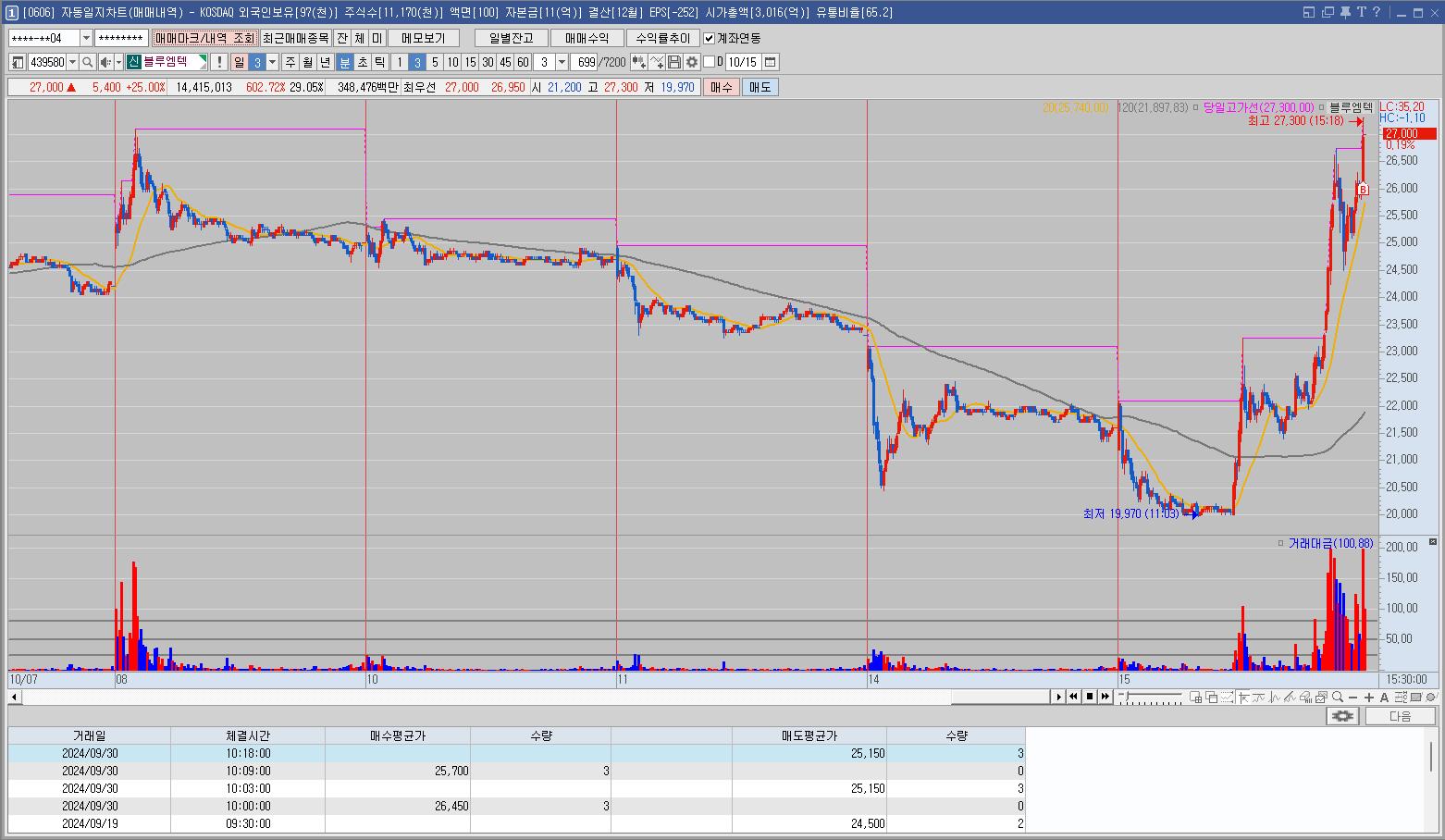 위아래로 흔들어 대는 움직임에 짧게 끊어가면서 분할 매수 매도