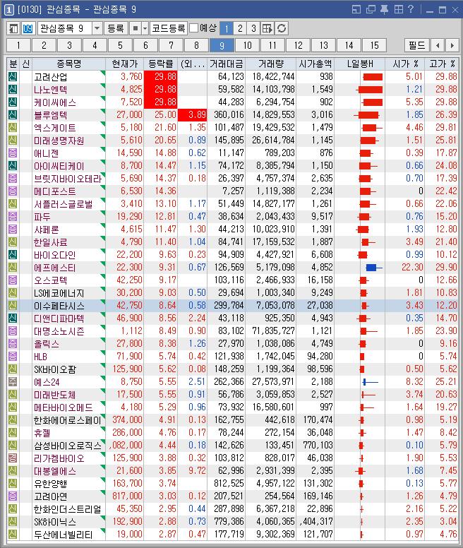 스몰캡 종목들과 사료주, 바이오주 등 조금만 명분이 있어도 돈이 몰려서 멱살잡고 끌고 가는 듯한 느낌을 받았다