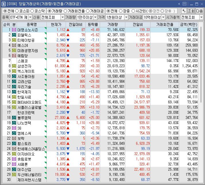 예스24 | -2.51 | 2,423 | 투자경고종목지정 |