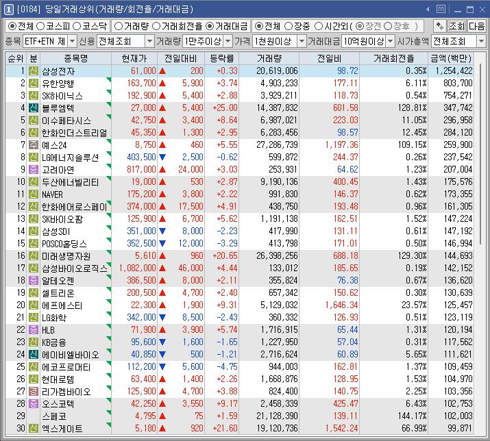 오스코텍 | 9.17 | 102,773 | 비소세포폐암 신약 '렉라자'의 미국 시장 1년 약값이 약 3억원으로 책정, 경쟁사 보다 높게 책정 지속 부각 |