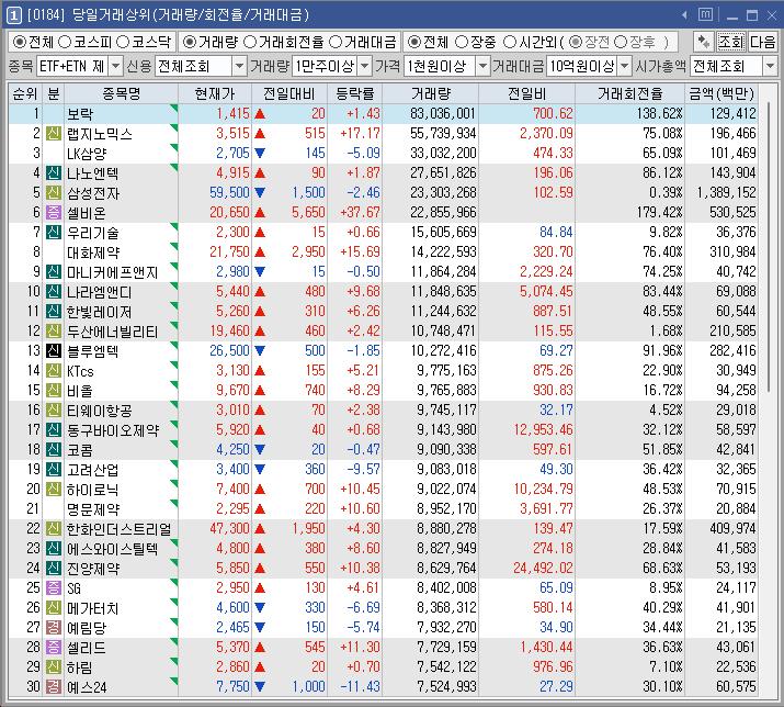나라엠앤디 | 9.68 | 68,586 | LG에너지솔루션 수주 잭팟...지배구조 부각 강세 |