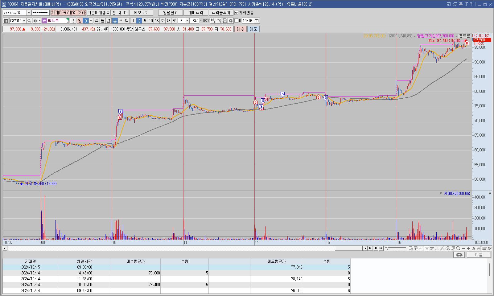 재료가 강하게 인식되는 시황이 오면 해당 섹터 내 강했던 종목들의 차트를 보고
