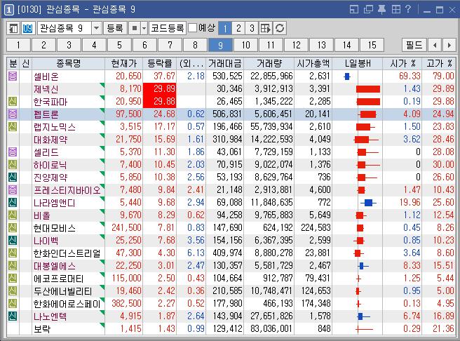 개별주 | 셀비온 랩지노믹스 케이피엠테크 대화제약 하이로닉 나라엠앤디 인스코비 에스와이스틸텍 |