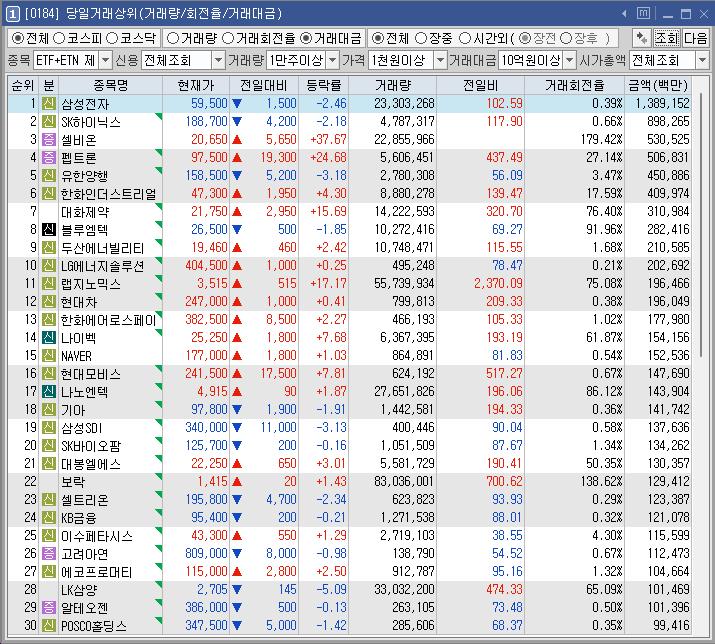 종목명 | 등락률 | 거래대금(백만) | 이유 |