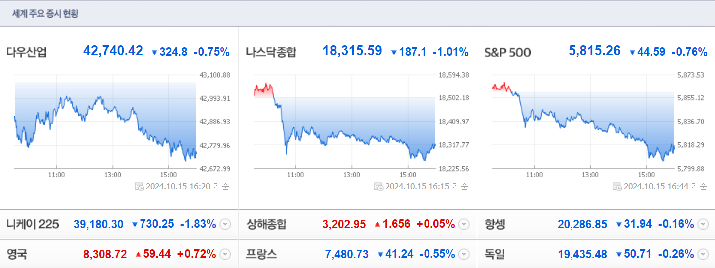 지난밤 뉴욕증시가 ASML 실적 쇼크 속 반도체, AI 관련주 약세 및 美 제조업 경기 위축 등에 하락