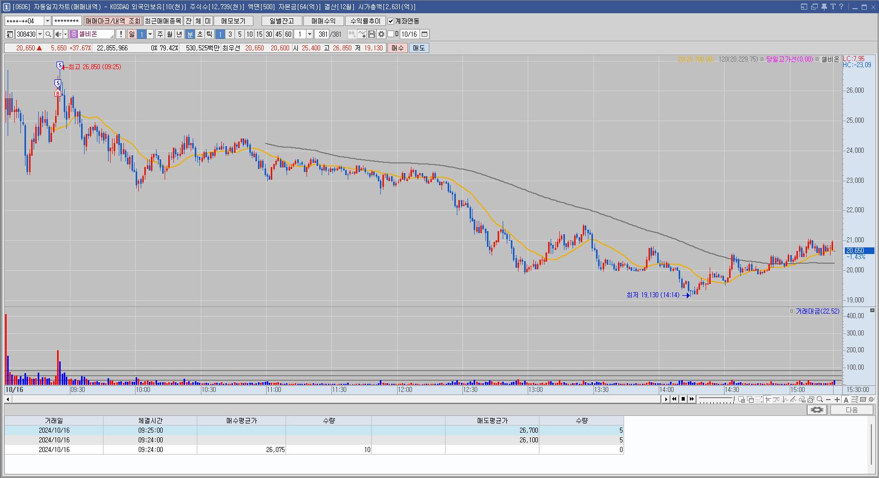 기습적으로 급등시키는 종목들이 높게 올라가면서 매매하기가 쉽지 않은 장이었다