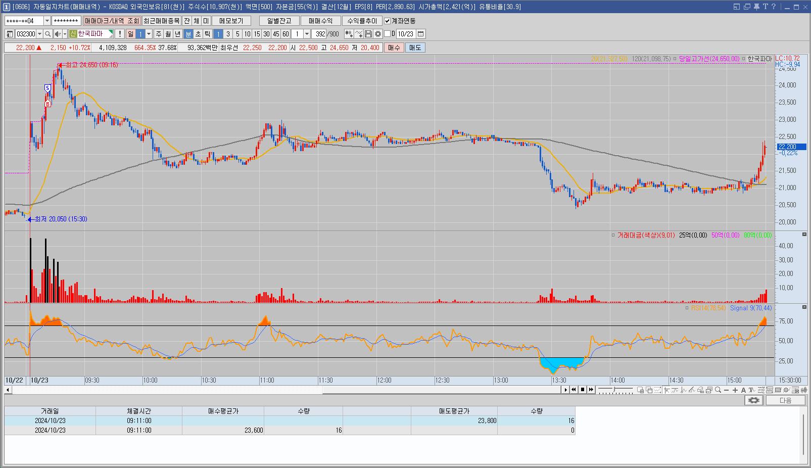 신규주는 당일만 확인하고 다시 좋은 구간을 만들기 전까지는 매매하지 않겠다는 규칙을 추가해야겠다