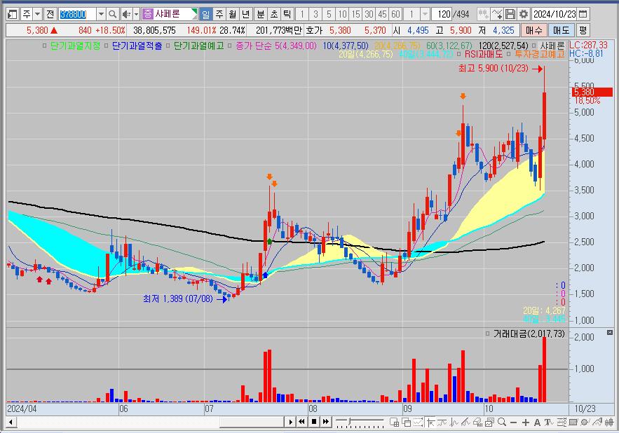 샤페론 | -3.35 | 3,572 | 투자경고종목지정(재지정) |