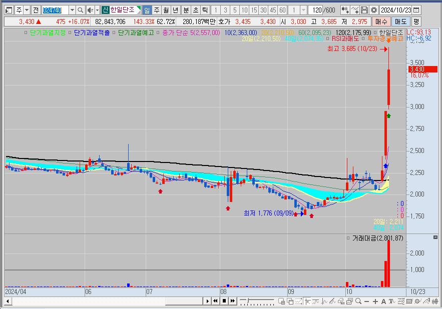 한일단조 | 16.07 | 278,030 | 북한의 러시아 파병 소식 지속 방산 테마 강세 |