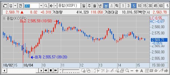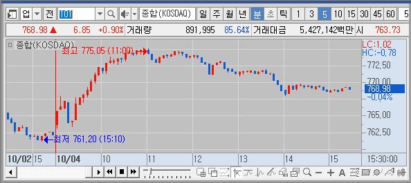 우리나라 시장은 보합권에서 출발해서 상승했으나 중간 중간 등락을 보임