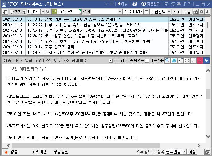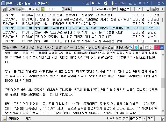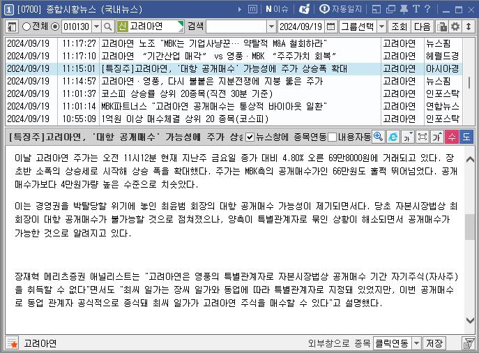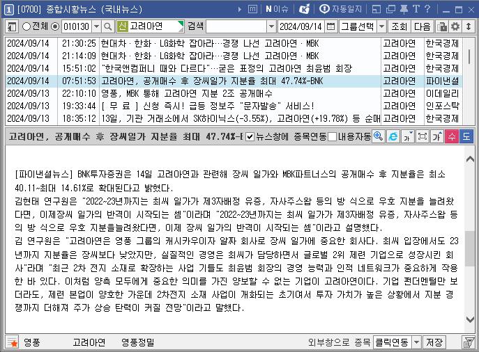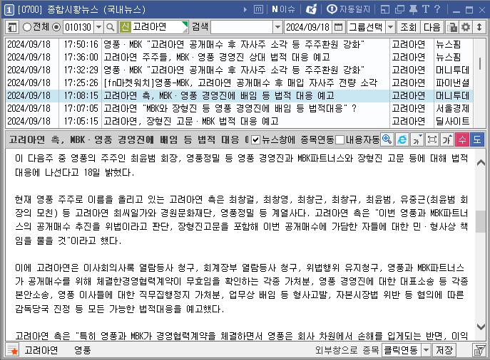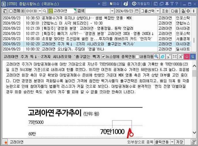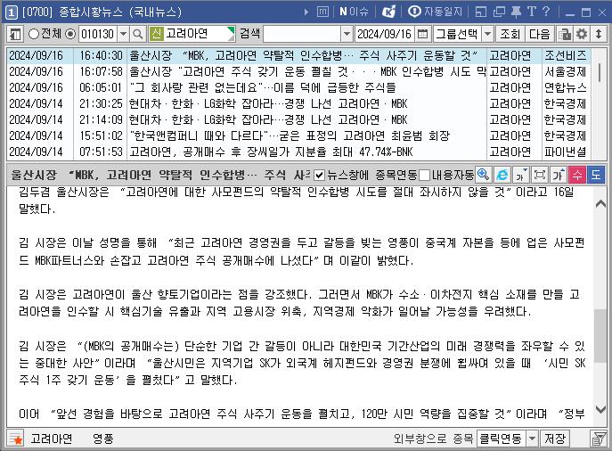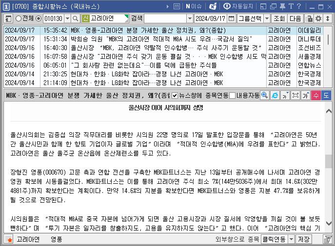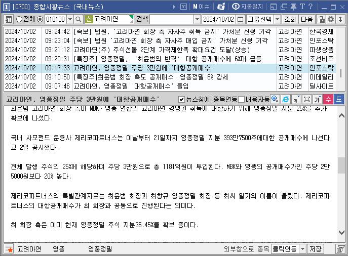 영풍,MBK vs 고려아연 일자별 관련 뉴스