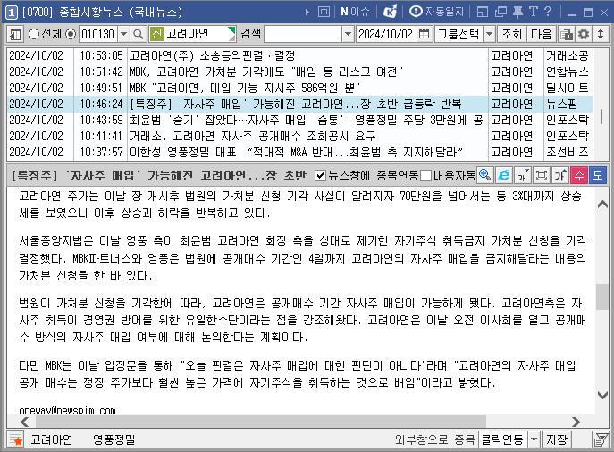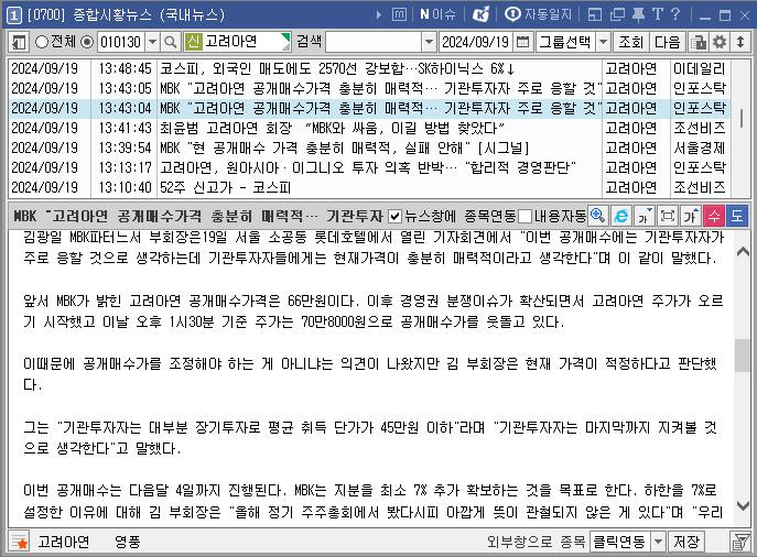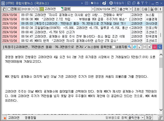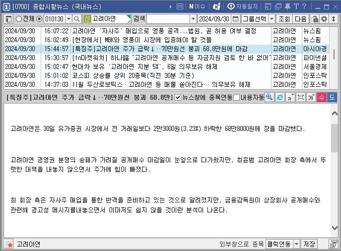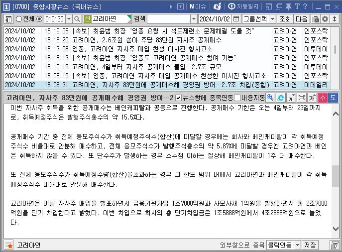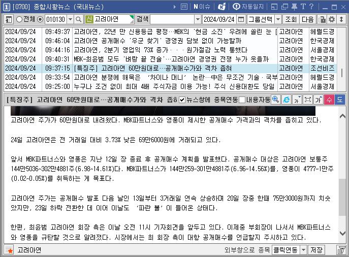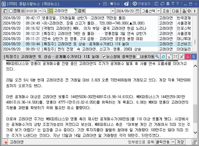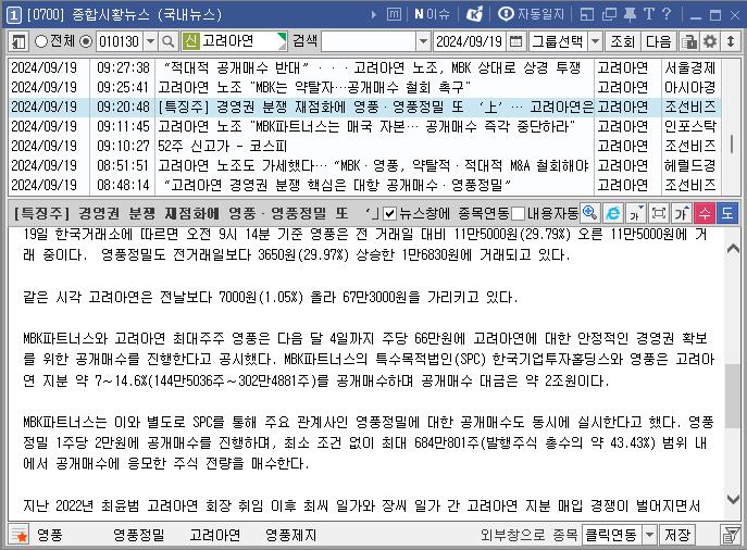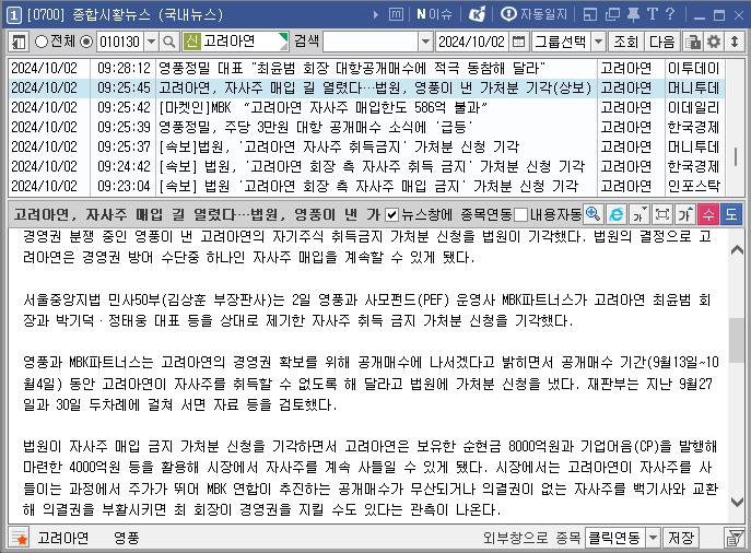 영풍,MBK vs 고려아연 일자별 관련 뉴스
