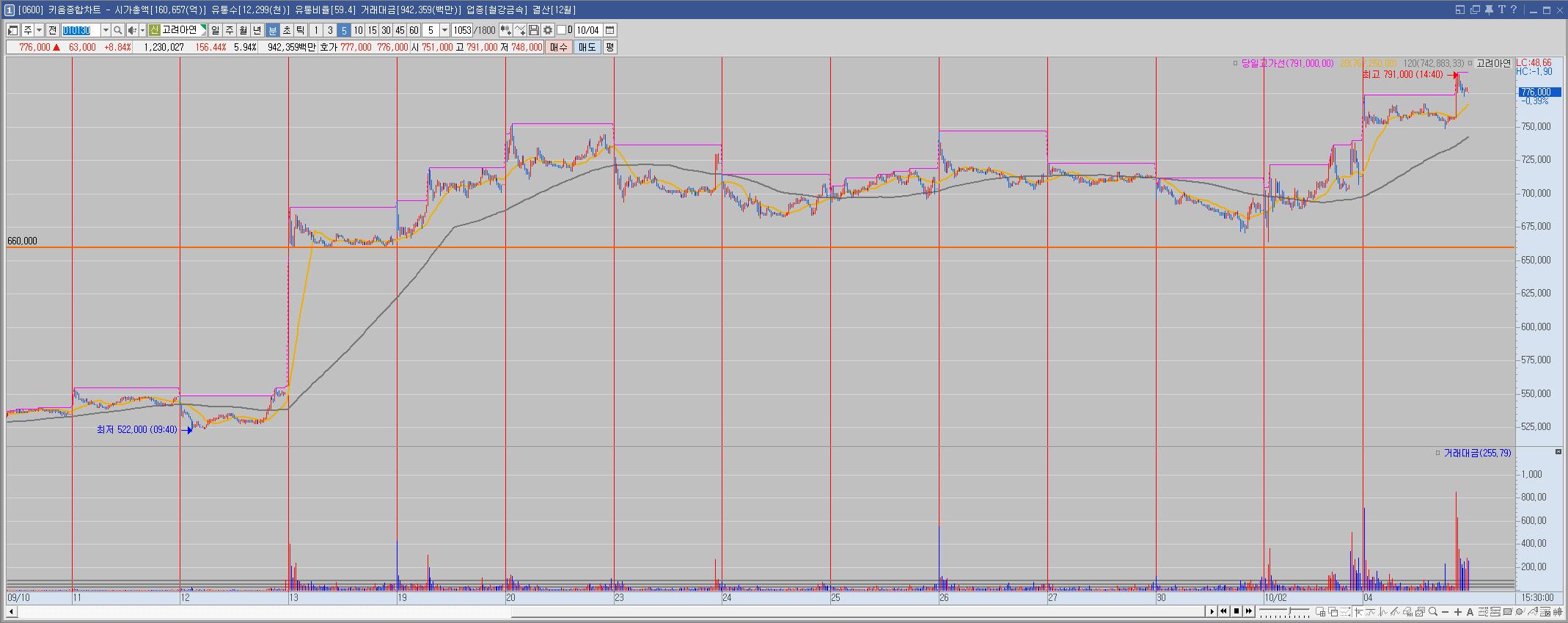기준가를 손절가로 잡고 눌림에 매집해서 단기 슈팅에 매도하는 트레이딩 접근이 가능할 것 같다