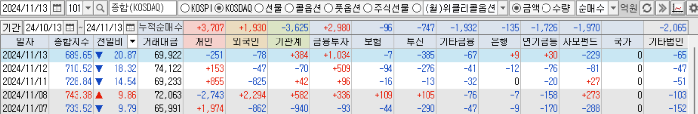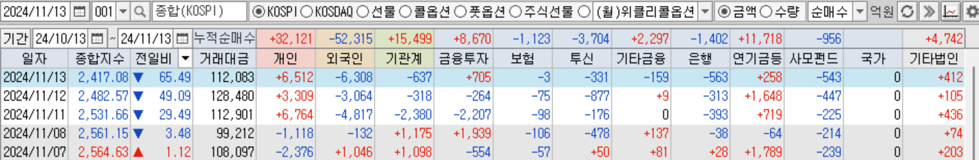 2024년 11월 13일(수) 과도한 하락세인 시장