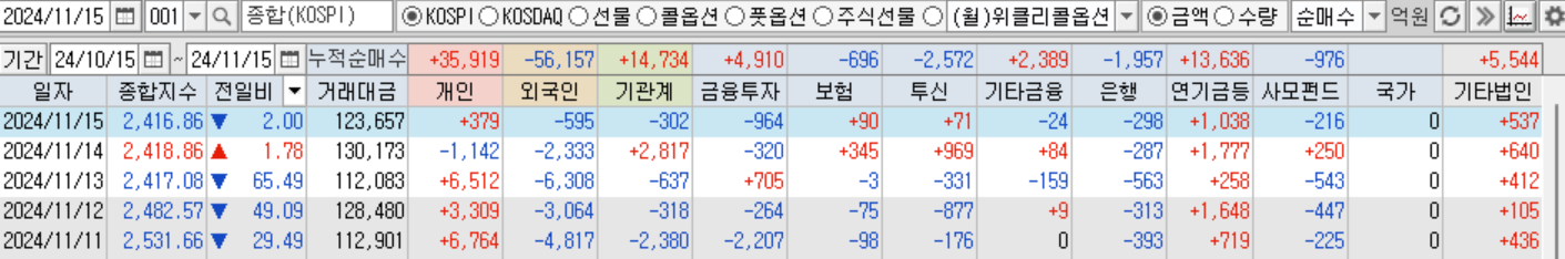 2024년 11월 19일(화) 급등과 급락이 반복되는 시장(거래대금 부족?) (0) | 2024.11.19 |