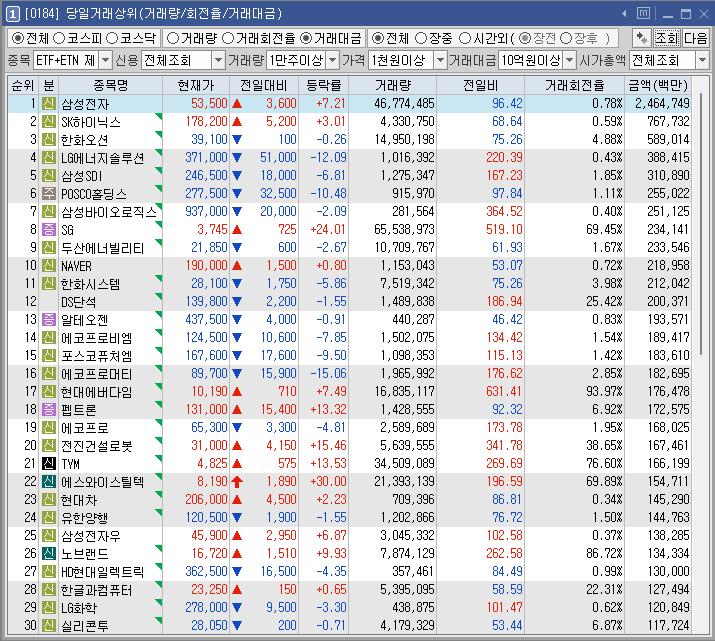 종목명 | 등락률 | 거래대금(백만) | 이유 |