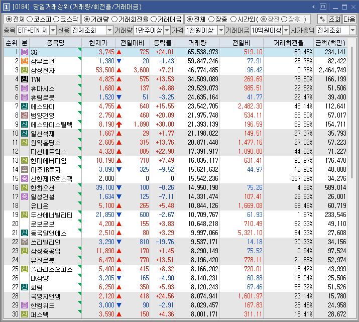 일성건설 | 1.90 | 288 | 건설 테마 강세 |