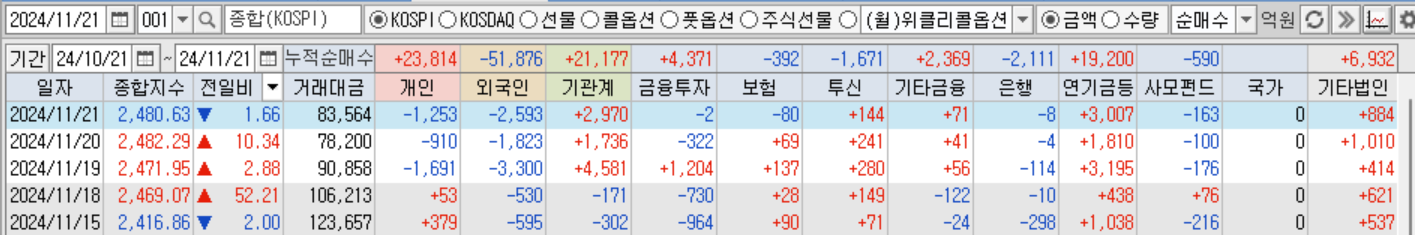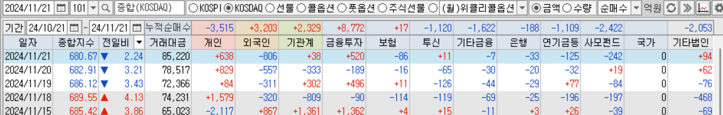 2024년 11월 19일(화) 급등과 급락이 반복되는 시장(거래대금 부족?) (0) | 2024.11.19 |