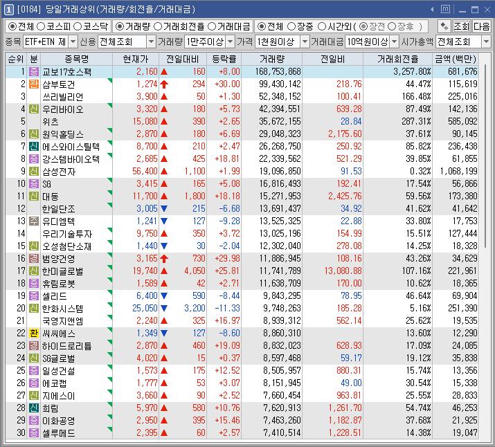 교보17호스팩 | 8.00 | 680,929 | 신규 상장 첫날 |
