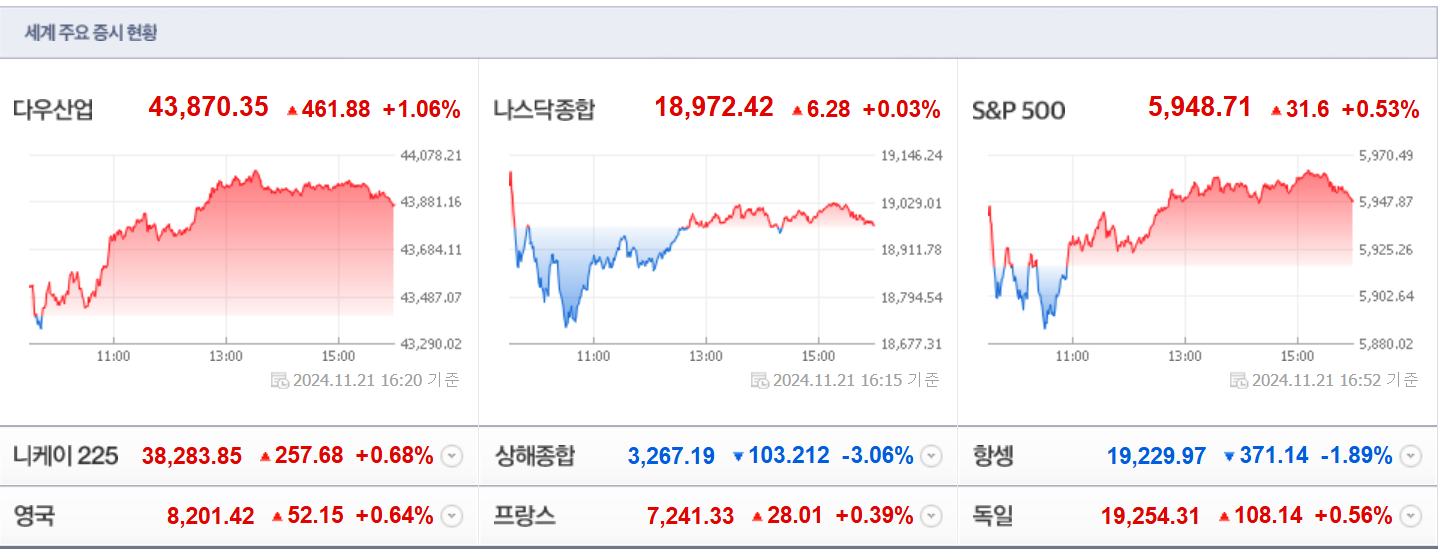 밤사이 뉴욕증시가 엔비디아 실적 소화 속 연말 소비지출 기대감 등에 상승