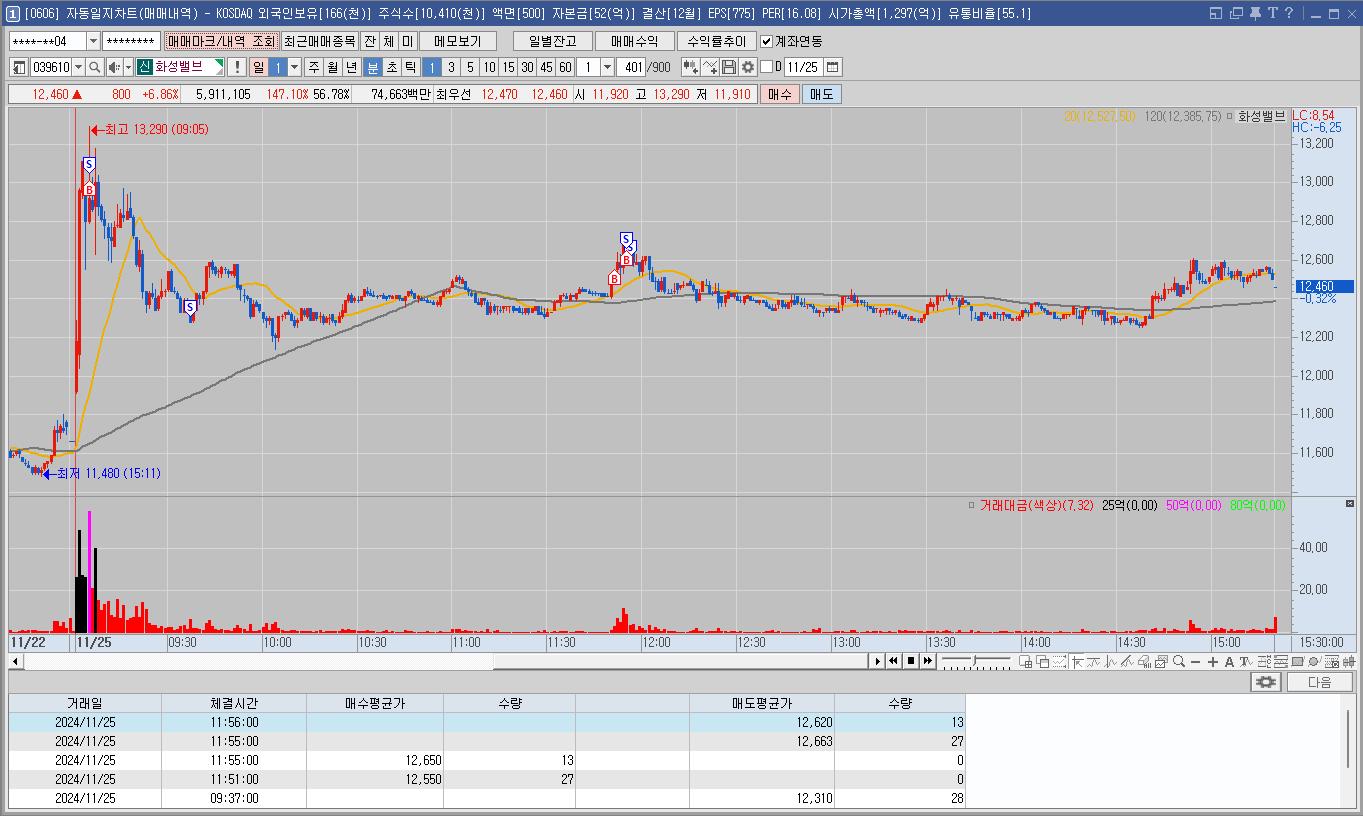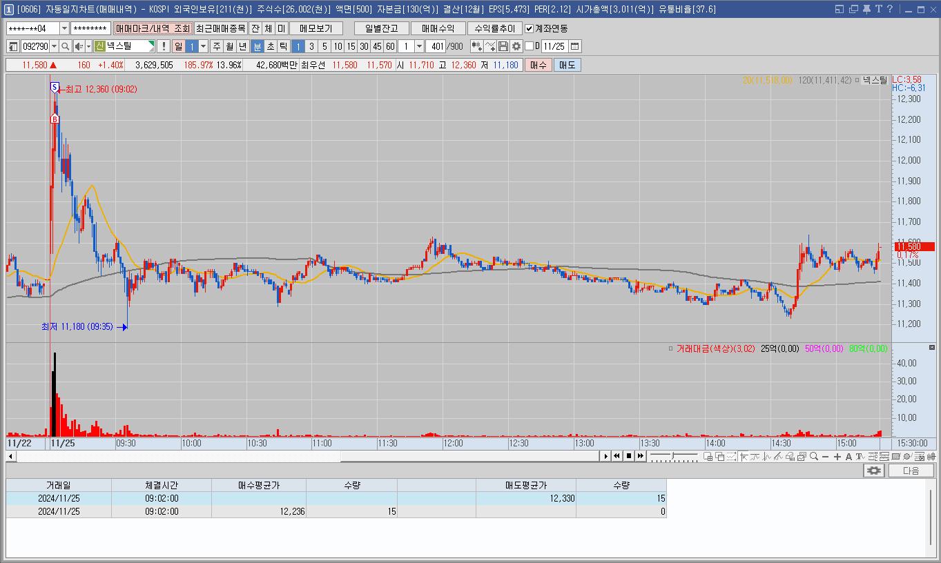 평소 상승이 잘 나오던 종목이라 조금 길게 보려고 했는데 변동성에 짧게 매매