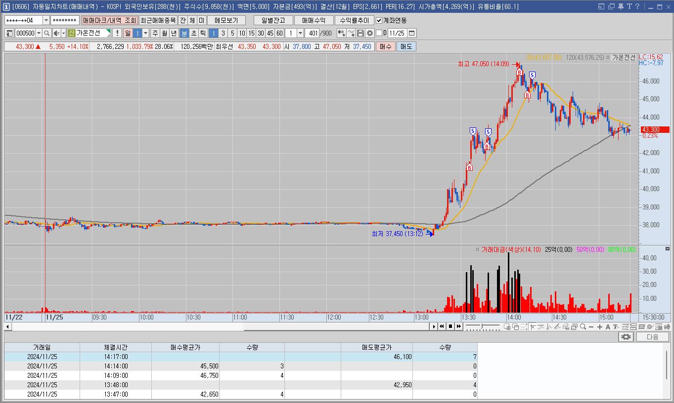 가온전선이 강하게 상승하는 걸 보고 가온전선으로 이동