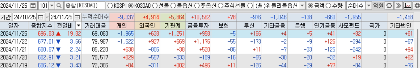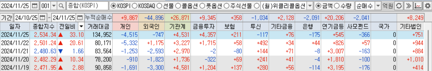 2024년 11월 19일(화) 급등과 급락이 반복되는 시장(거래대금 부족?) (0) | 2024.11.19 |