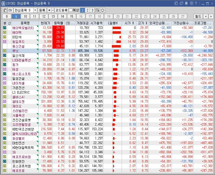 거의 대부분의 종목들이 상승하는 시장에서 돌아가면서 강하게 상승하는 종목들이 나왔는데
