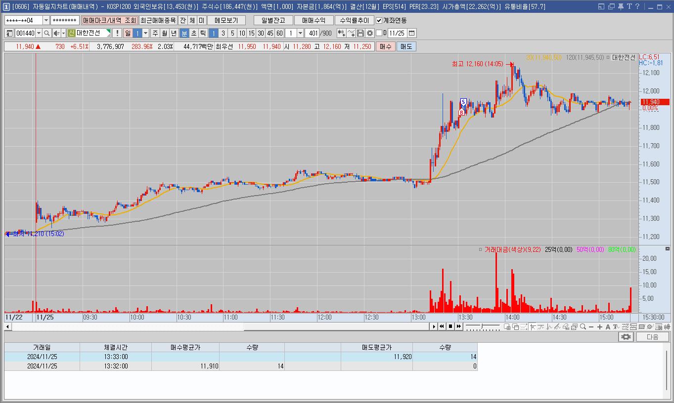 전선 관련주가 같이 움직일때 대한전선이 대장주라고 보고 매매