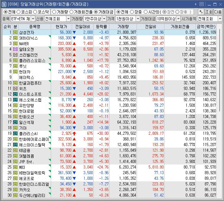 푸른기술 | 16.28 | 28,146 | 트럼프-김정은 회담 가능성에 남북경협株 강세 |