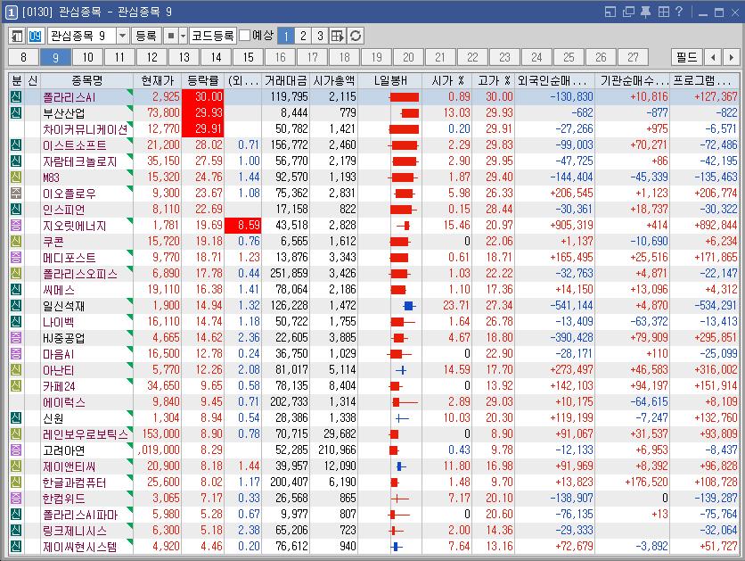 폴라리스AI | 30.00 | 119,726 | 트럼프, 백악관에 'AI 차르' 임명 검토 소식에 AI 테마 강세 |