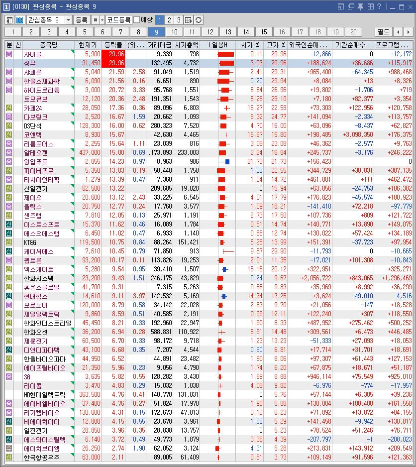 자이글 29.96 9,339 미국 금리인하 훈풍 2차전지 테마 강세