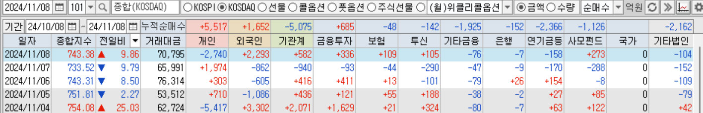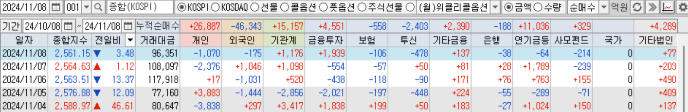 2024년 11월 8일(금) 시장의 흐름이 조금 나아진 것 같은 느낌
