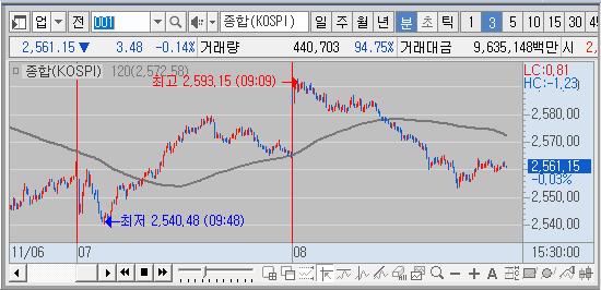 우리나라는 상승출발 후 점차 하락세
